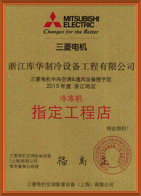 與三菱電機有著同樣的企業素質,提供優質的冷庫工程領域,提高技術、服務與創造力,本著嚴謹求實、創新奮進的精神,不斷完善進取,為中國制冷領域提供高性比的制冷工程,我們設計建造的各類冷庫工程,得到了日本、德國、新西蘭、臺灣、美國等眾多國內外客戶高度的認可,并多次將冷庫設備出口至國外。力求成為制冷行業庫華制冷優秀冷庫安裝工程公司。公司完善的品質體系贏得客戶青睞。成為三菱電機浙江省總代理指定工程店。如圖所示: